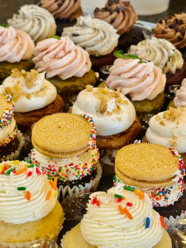 Vintage cakes, beautifully curated cupcakes & cinnamon buns — all available for custom order.